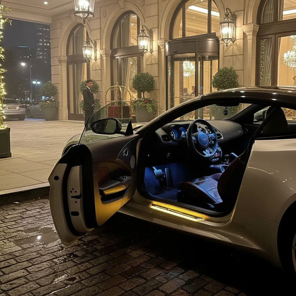 Our LED Door Sills provide good lighting guidelines for entering your car. When you open the door, the door sill plate lights up and displays the vehicle’s name and logo, helping to get in and out of the car in darker areas. To maintain a 3-4 month battery life per charge, the lights tum off automatically when the door is closed.